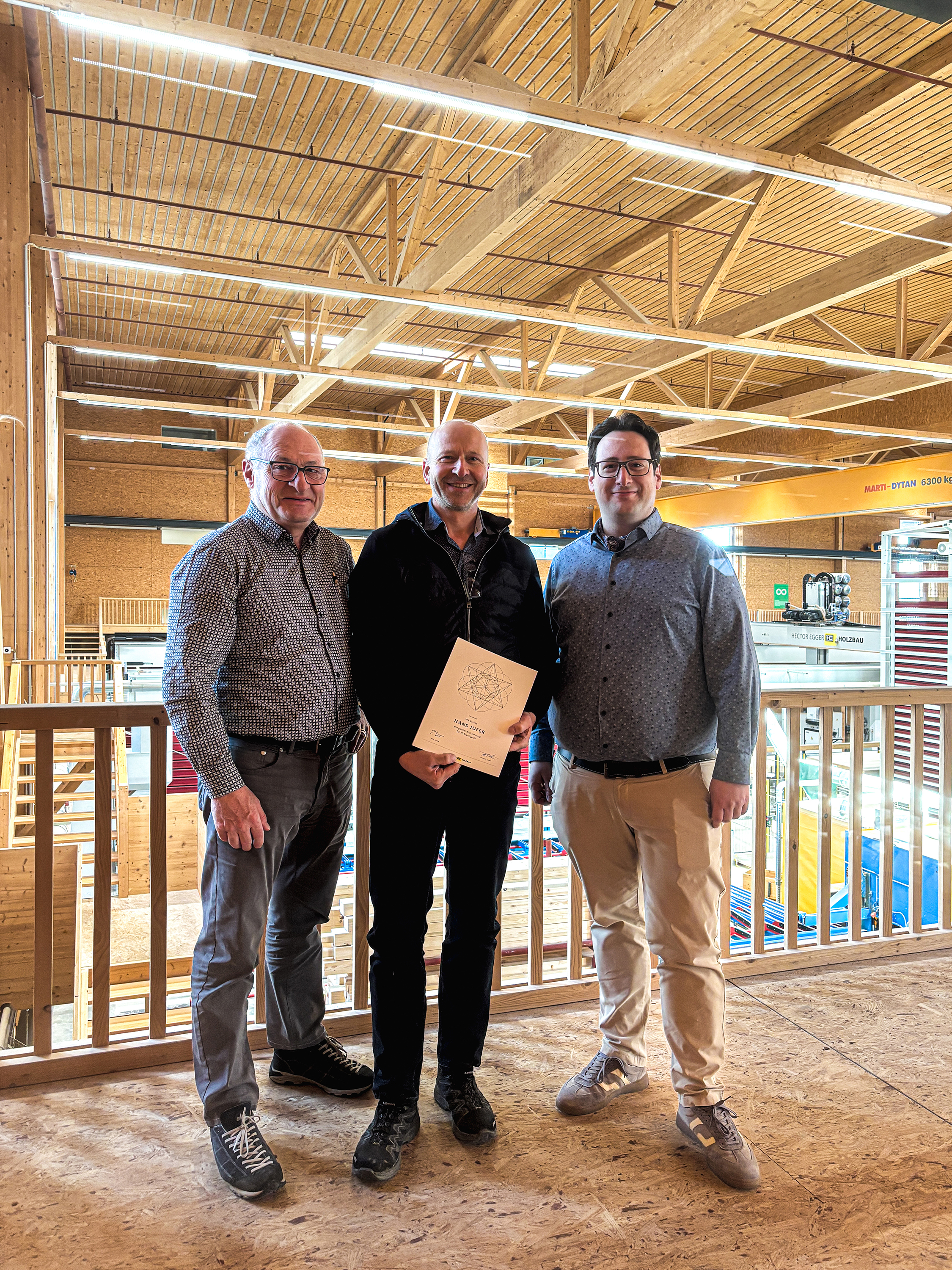 Unsere Lernenden Nick Platz und Jérome Kaufmann (Hector Egger Holzbau AG) sowie Joshua Jansen (Mosimann Holzbau AG) haben ihre Lehrabschlussprüfung als Zimmermann EFZ souverän bestanden.